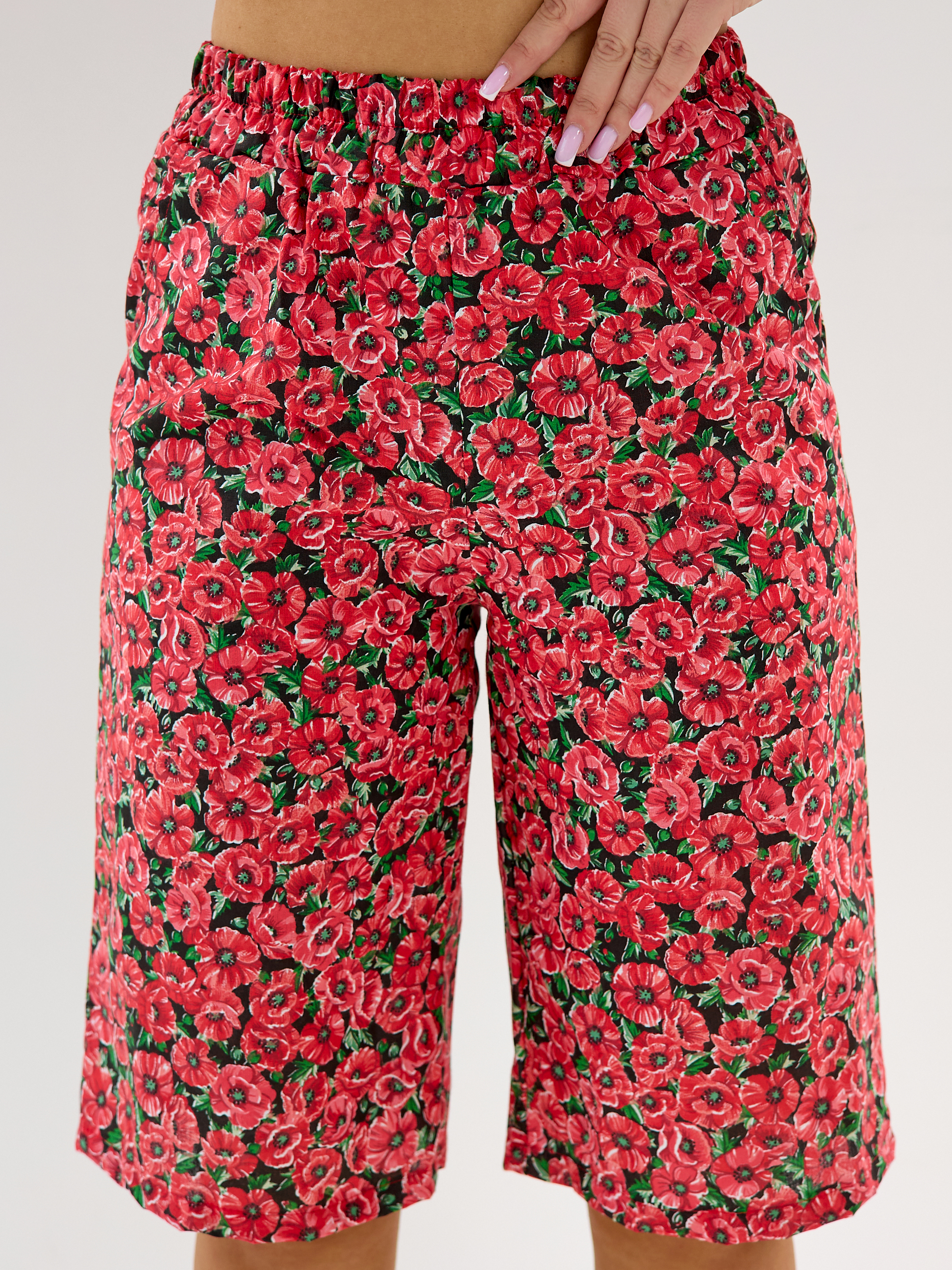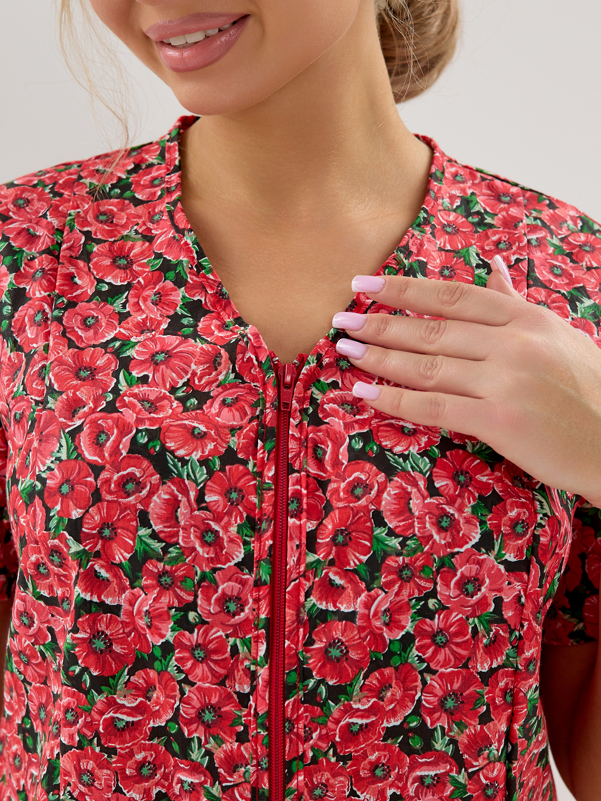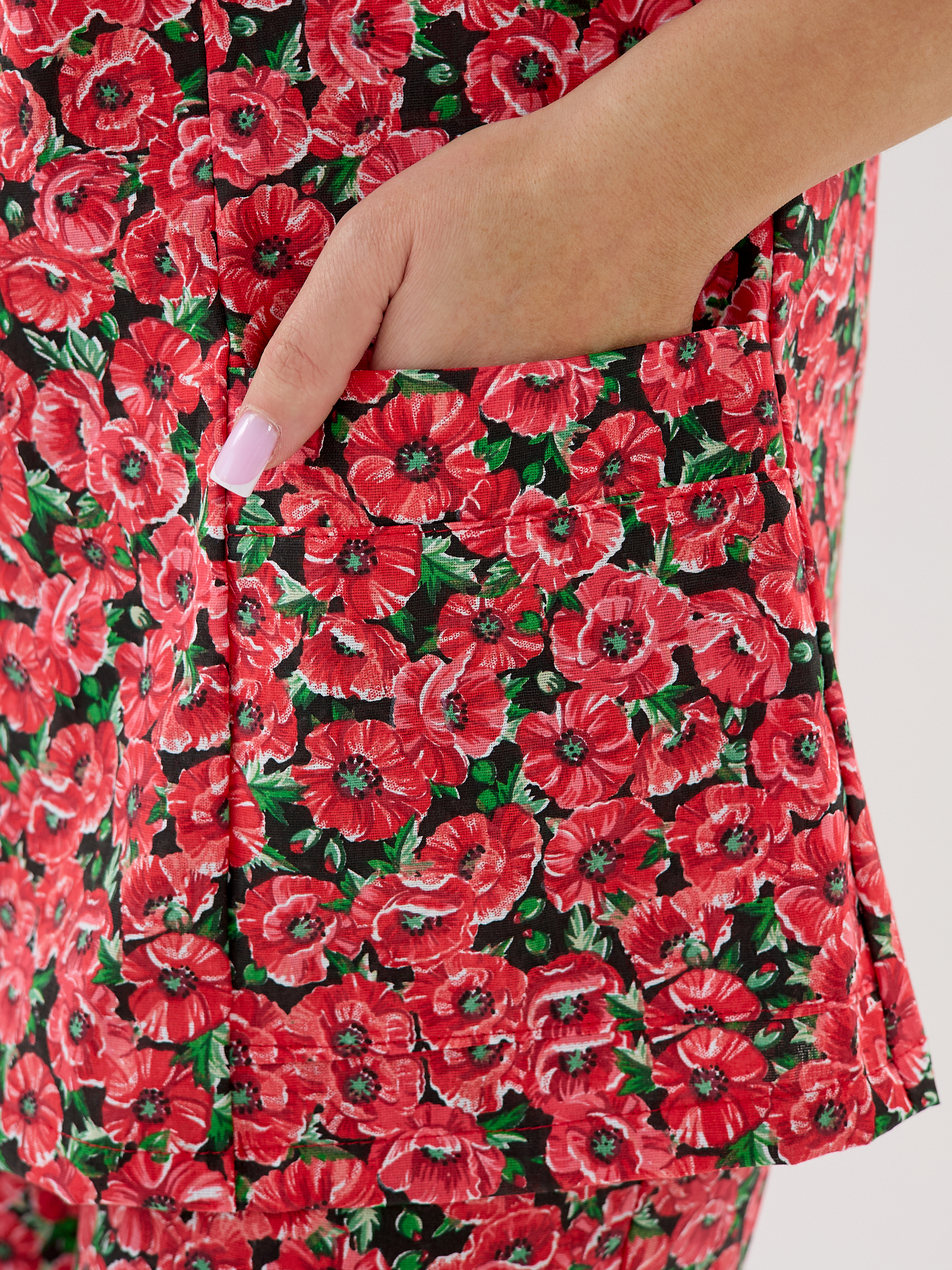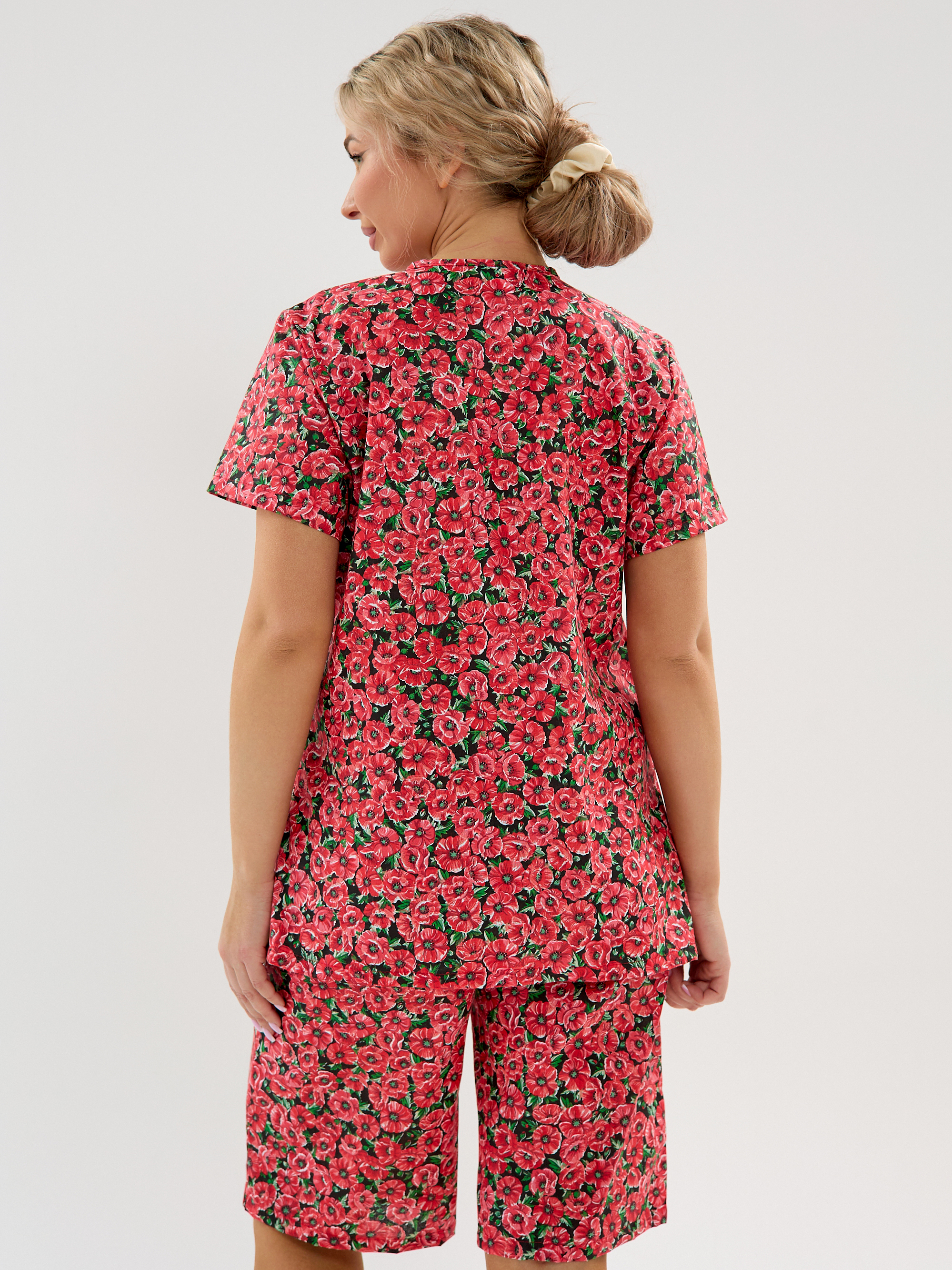 Женский дачный костюм из бязи, кофта на молнии с коротким втачным рукавом и карманами, шорты ниже колена на резинке. Натуральный 100% хлопок, дышащая ткань, тело будет дышать даже в самый жаркий день, свободный крой не будет сковывать движений. Яркий принт красные маки подчёркивает женственность. Идеален для дачи, огорода, дома, отдыха на природе, а также для путешествий и поездок на море. Шорты с комфортной посадкой поэтому будет удобно наклоняться и работать в огороде. Костюм домашний бязевый подходит для дел по дому, уборки и отдыха. В глубокие практичные карманы поместятся семена, перчатки, пара морковок «на перекус» и даже телефон с ключами, а также разные мелочи. Костюм женский летний прост в уходе, бязь устойчива к частым стиркам, хорошо держит форму.