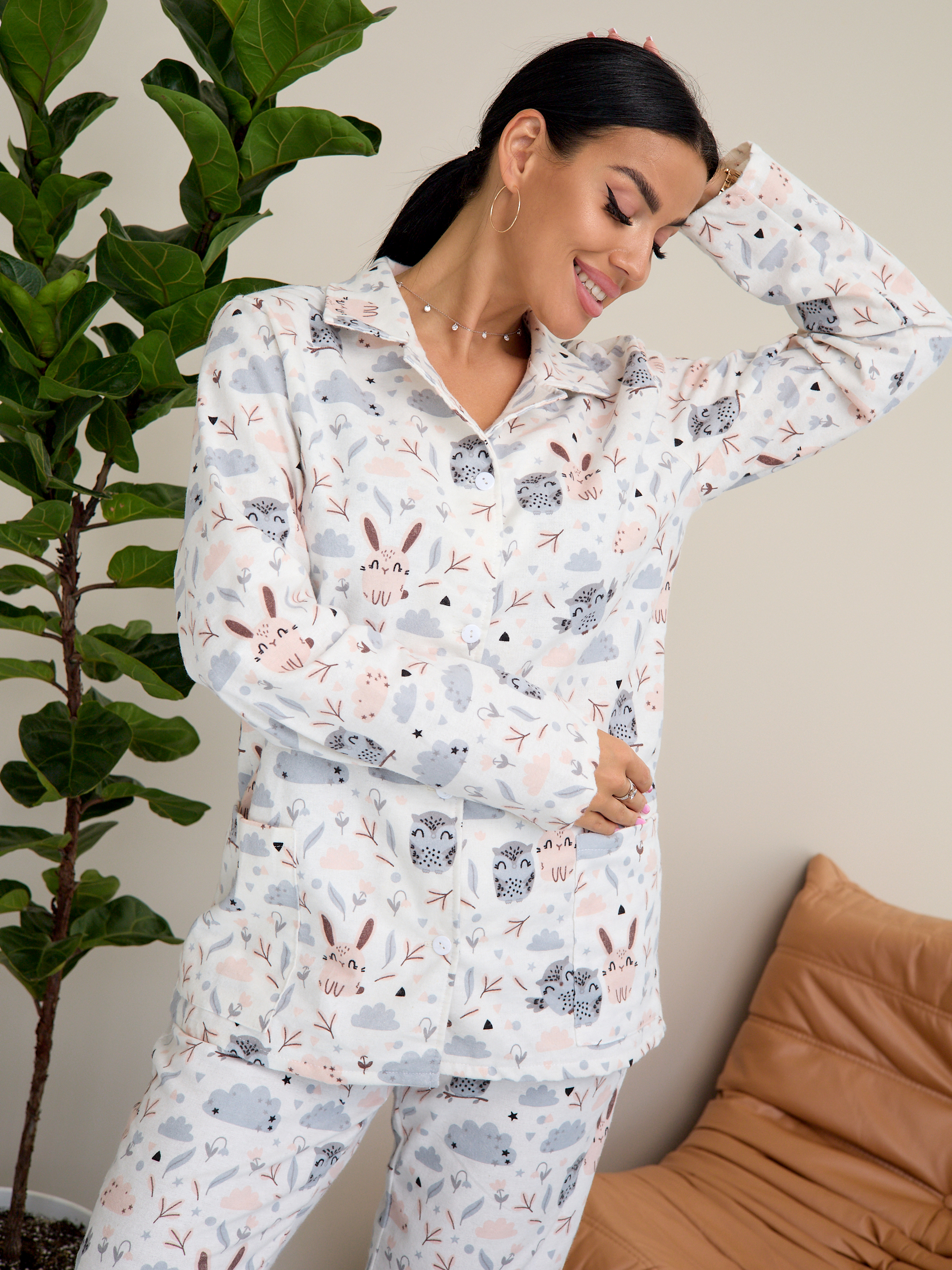 Главная Женская одежда Фланель Пижама женская м23 совы