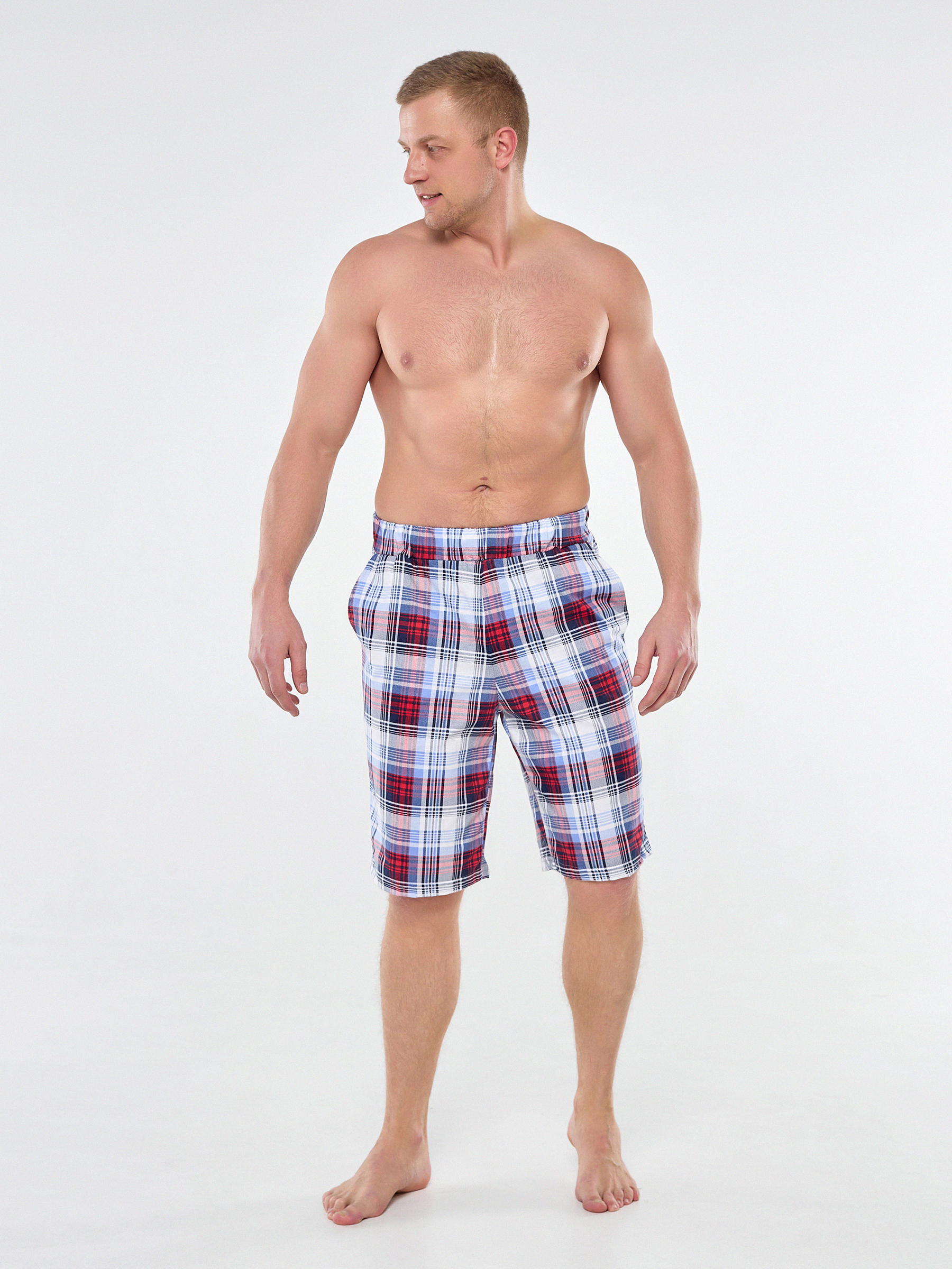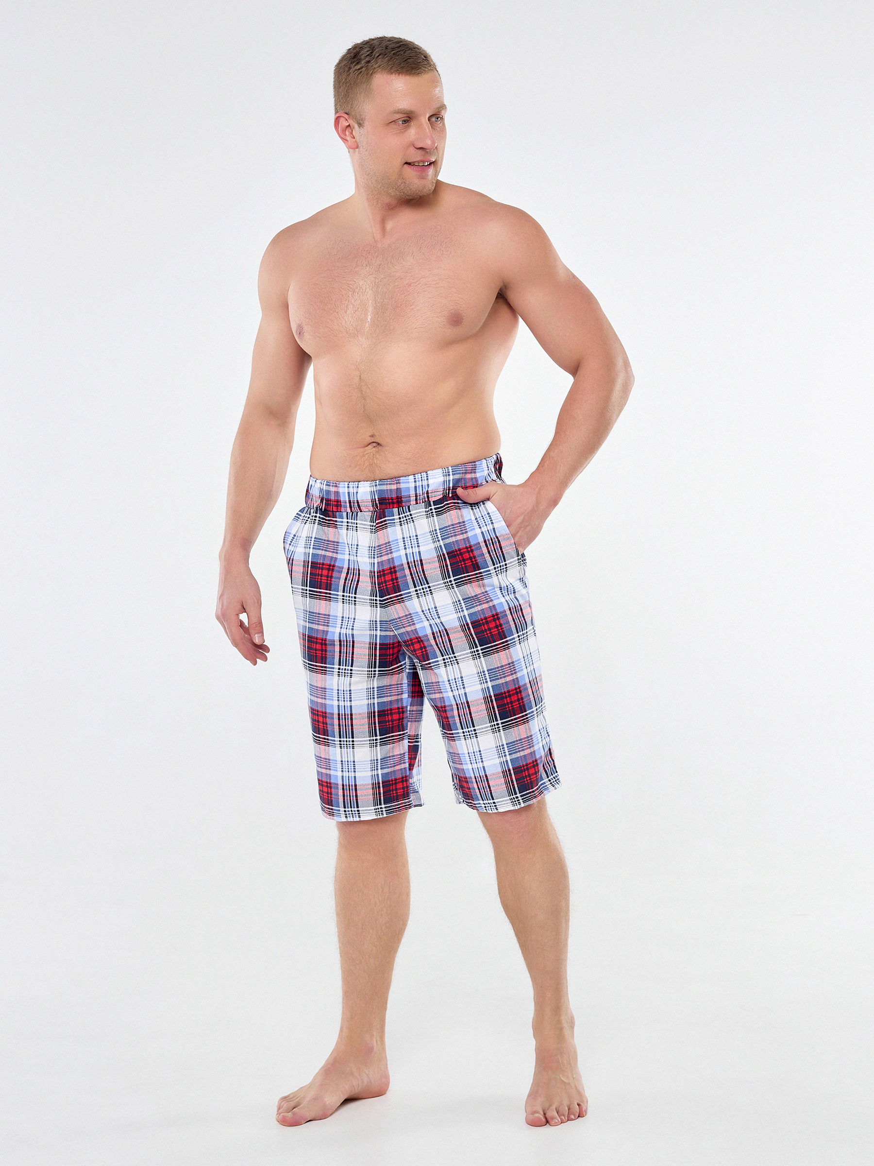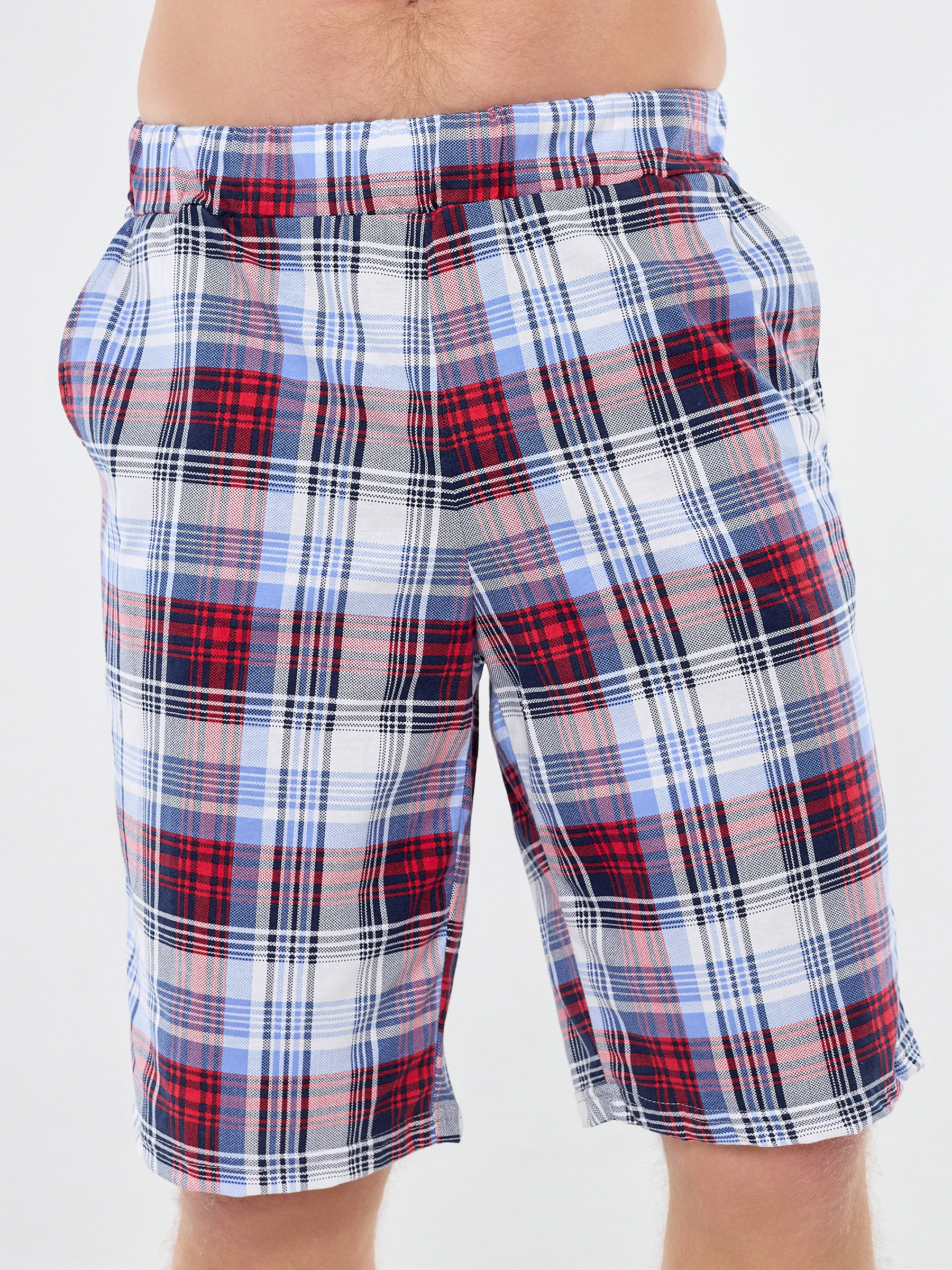 Мужские хлопковые домашние шорты с карманами по бокам.